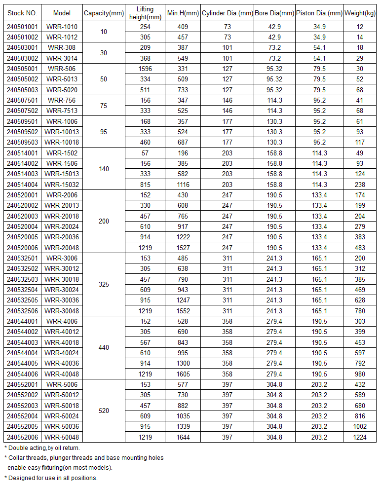 WRR Double-acting Hydraulic Cylinder